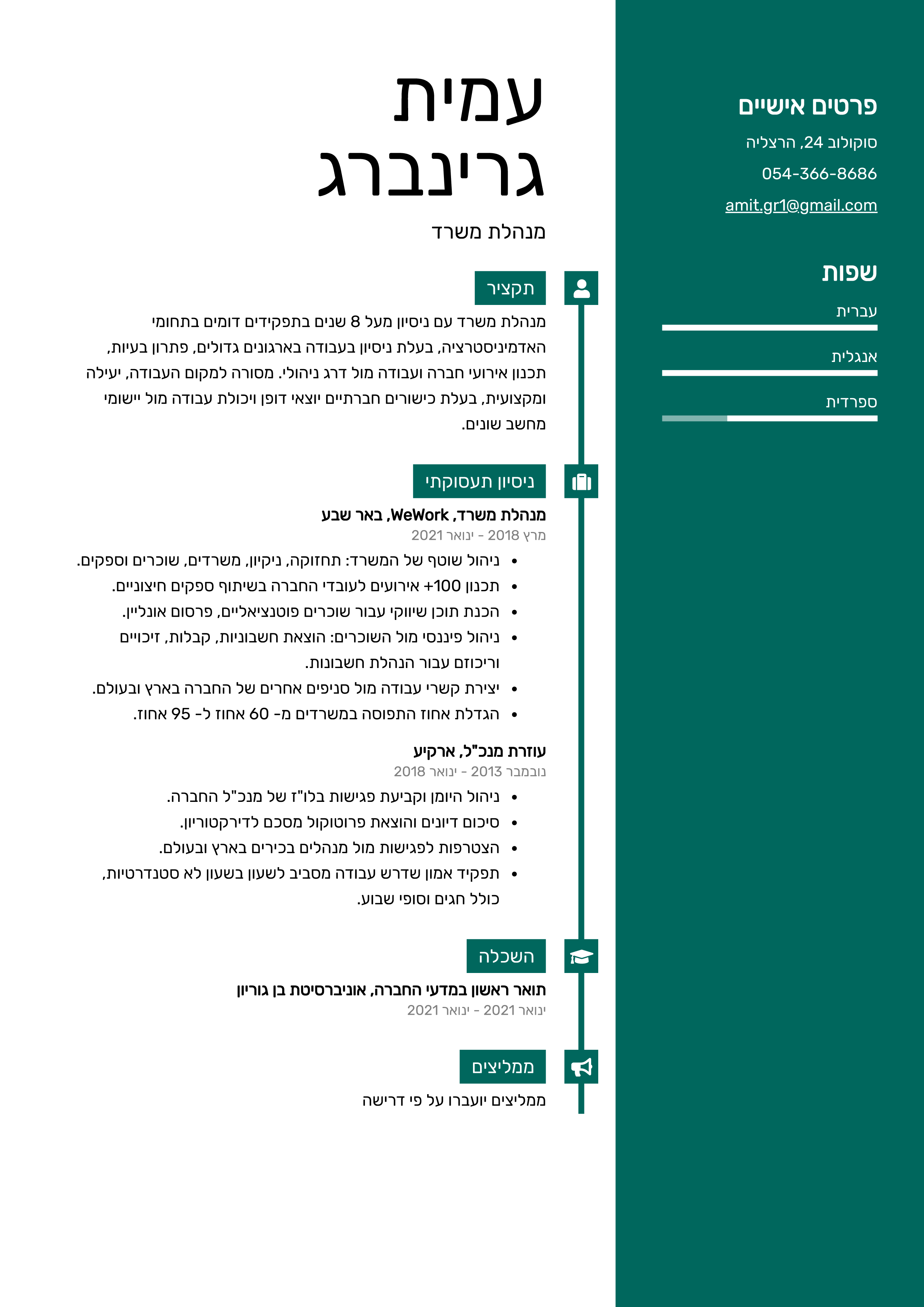 אם אתם יכולים להכניס מיומנויות או מושגים, פרויקטים שעבדתם עליהם, תפוקה שתרמתם לחברה, חסכון בכסף, הובלה מקצועית, שיפור תהליך מסוים – זה בהחלט יעזור לכם וכדאי להכניס אותם.