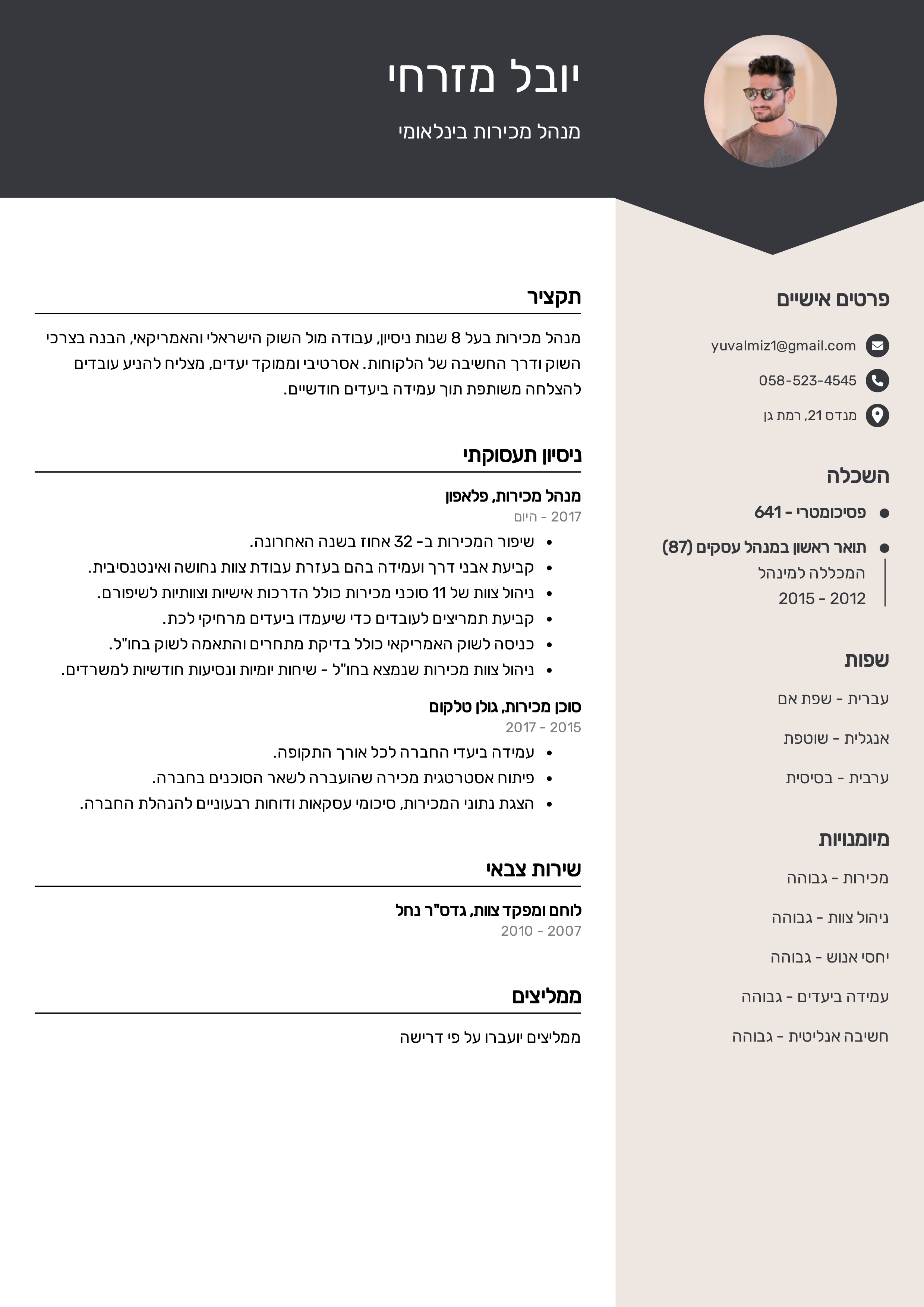 זהו חלק חשוב ביותר עבור המגייסים להבין האם אתם מתאימים למשרה הרלוונטית או לא. לפי תוכן המסמך והניסיון המקצועי שלכם יבינו תוך מס' שניות האם קיימת התאמה בינכם לתפקיד.