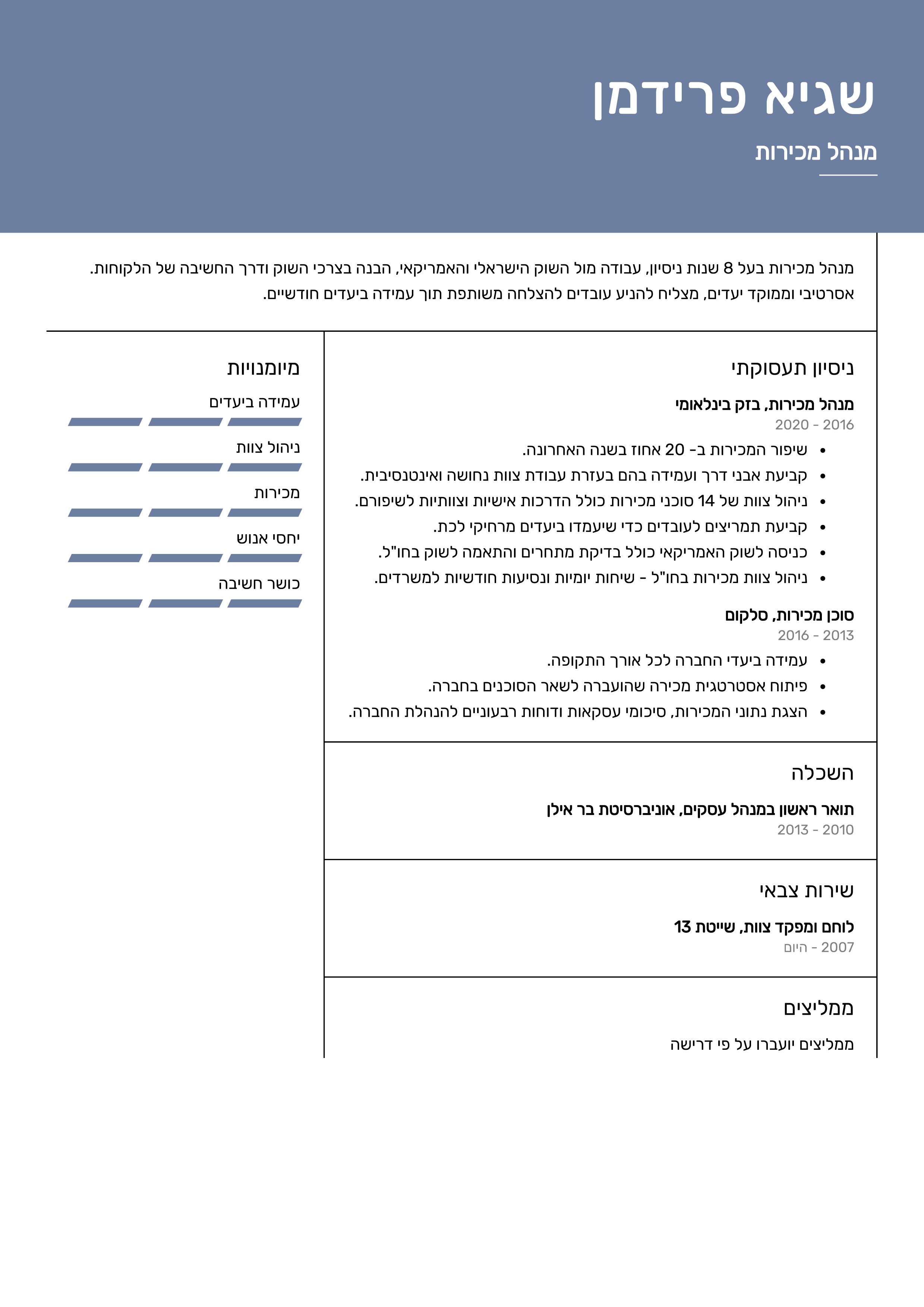 דוגמאות לכתיבת תקציר בקורות חיים של ברמן מנוסה