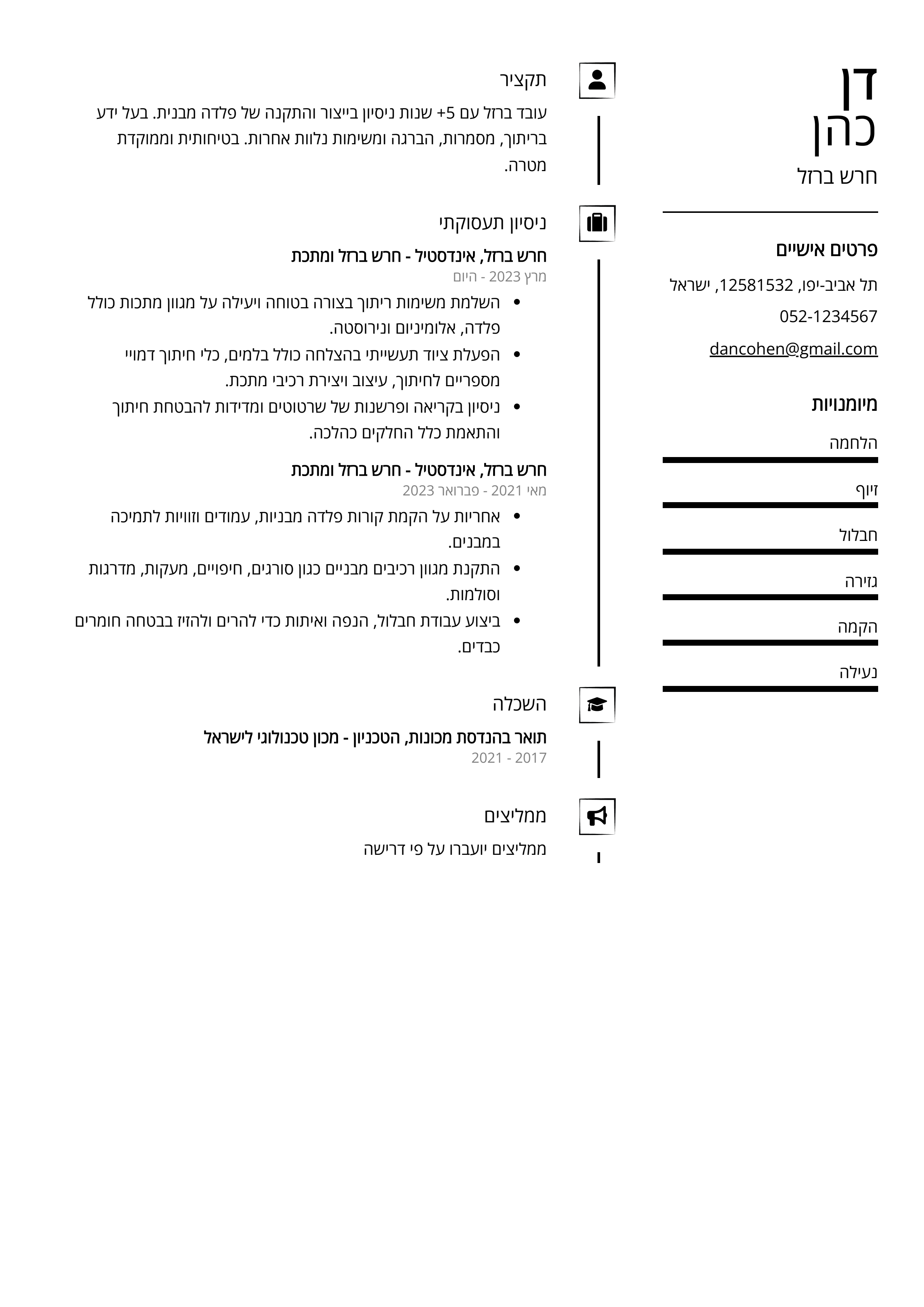 קורות חיים לעובד ברזל לדוגמא להשראה
