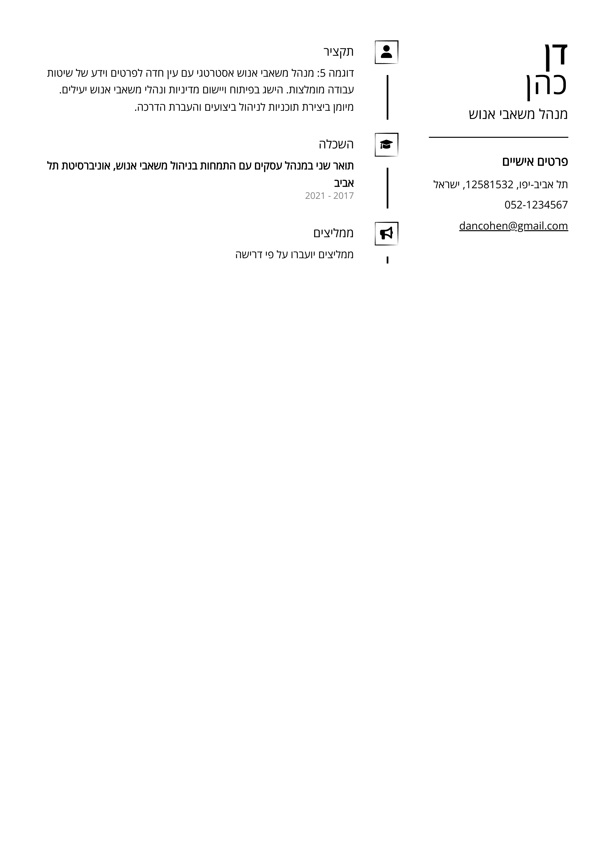 - קורות חיים לדוגמה של מנהל משאבי אנוש